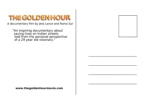 The Golden Hour: Documentary Film The Golden HOUR_Logo The Golden HOUR_Postcard_Front The Golden HOUR_Postcard_Back The Golden HOUR_Business Card_Front The Golden HOUR_Business Card_Back Share this: Share on X (Opens in new window) X Share on Facebook (Opens in new window) Facebook Like Loading...